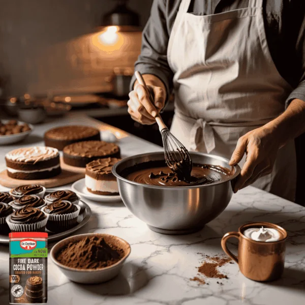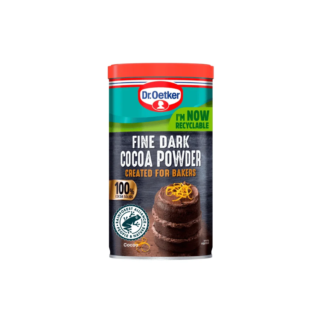 Looking to elevate your baking with rich, intense chocolate flavour? The Dr. Oetker Fine Dark Cocoa Powder Tub 190g is your go-to choice. Whether you’re a home baker or a professional pastry chef, this premium-quality cocoa powder guarantees deep flavour and a smooth, dark finish every time. Made from carefully selected cocoa beans, this fine dark cocoa powder offers a bold, rich chocolate taste that adds depth to cakes, brownies, cookies, and desserts. With a finely milled texture, it blends effortlessly into dry and wet mixtures, delivering consistent results in every batch.
