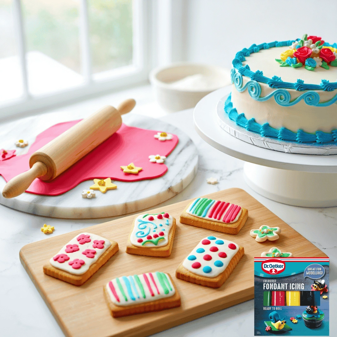 Bring vibrant colour and creativity to your bakes with Dr. Oetker Ready To Roll Coloured Icing 500g, this high-quality coloured icing is the perfect choice for decorating cakes, cupcakes, biscuits, and more. Dr. Oetker Ready To Roll Coloured Icing 500g comes in a rich, vibrant colour that stays bold even after setting. The soft texture makes it simple to knead, roll, and shape. You can cover cakes smoothly, create intricate decorations, or even model figures. Plus, it holds its shape perfectly, making it ideal for both covering and detailed work. Using this coloured icing is easy. Simply knead until soft and pliable, then roll out to your desired thickness. You can use a little icing sugar to prevent sticking. Whether you’re crafting flowers, fun characters, or elegant cake designs, this icing helps bring your ideas to life with a professional finish.