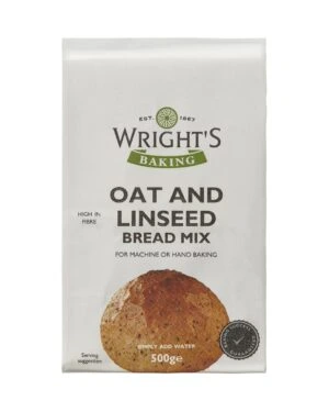 Wright’s Oat & Linseed is a bread mix created from white baker’s quality flour with pinhead oats, oat fibre and healthy linseeds for a deliciously light loaf or rolls with a subtle crunch. This mix works brilliantly in bread making machines or by hand from your oven at home. The bread is a great base for your own ideas, whatever the family favourite is. Wright’s Oat & Linseed bread mix is suitable for vegetarians and freezes well. This healthy mix produces a healthy bread with oat and linseeds. With the combination of oat bran and wheat bran, it is high in both soluble and insoluble fibre. Doctors recommend these fibres for a healthy heart and a healthy digestion. They also say our meals should be based around starchy carbohydrates like bread.
